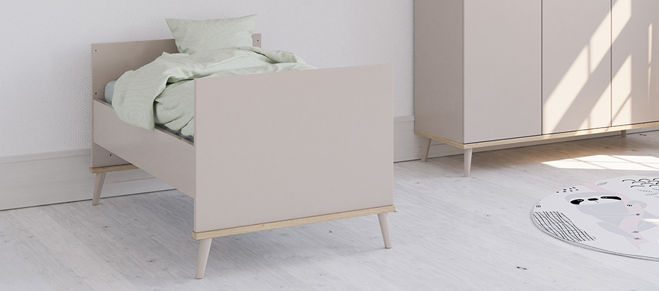 Das Babybett ist der Ort, an dem dein Baby gut schläft – ab dem ersten Tag, nah bei euch im Elternschlafzimmer. Später kann euer Nachwuchs durch die zwei Schlupfsprossen selbstbestimmt hinein- und herausklettern. Und danach wird das Babybett zum kleinen Juniorbett.